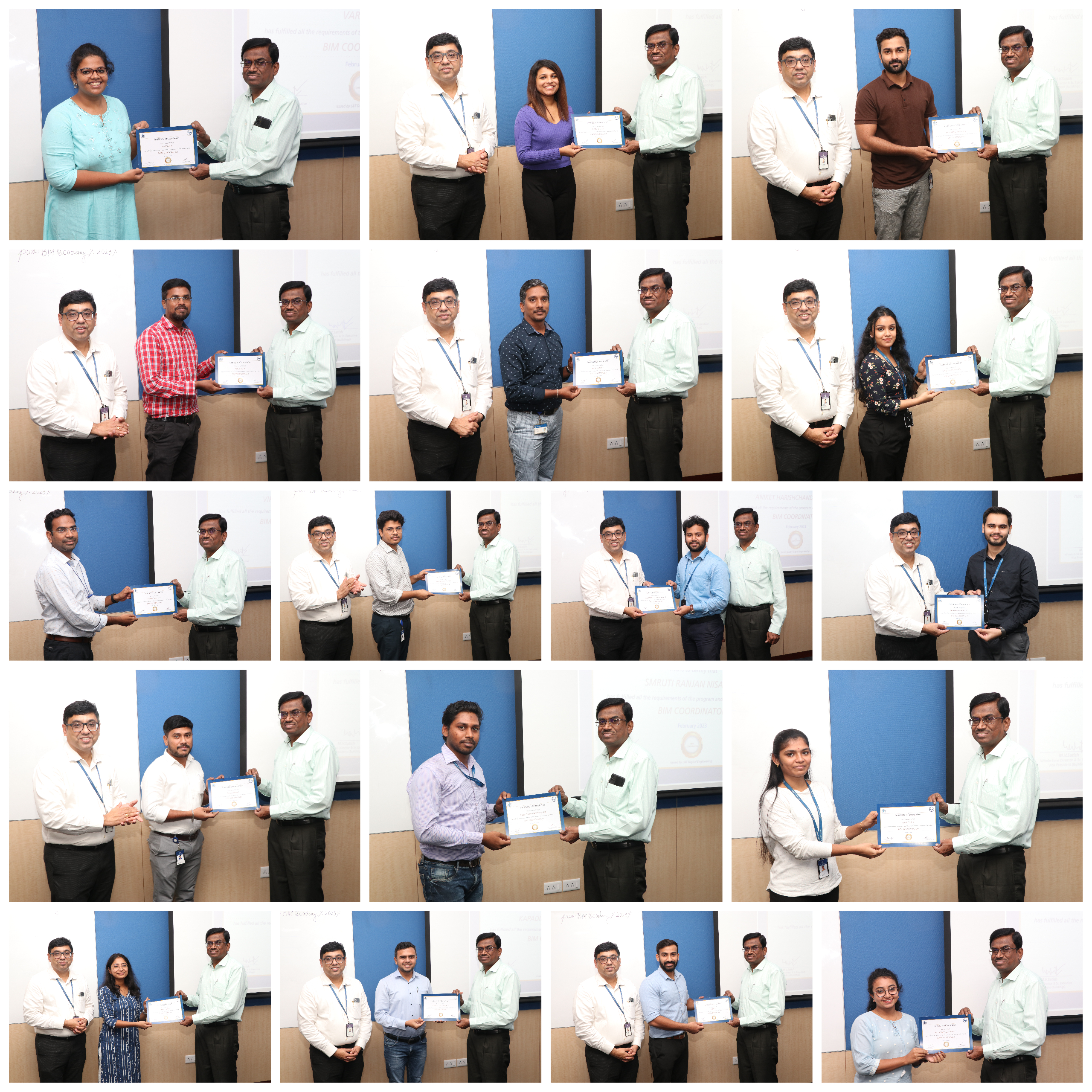 Mr. K. Veerappan, Vice President & Head - EDRC, B&F IC, congratulated all the candidates and handed over the BIM academy’s “BIM Co-ordinator Certificate”