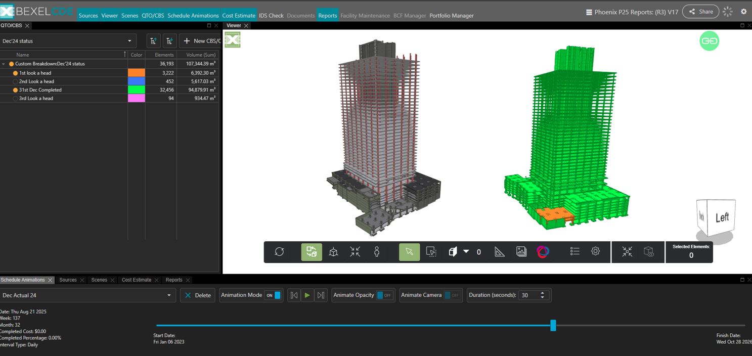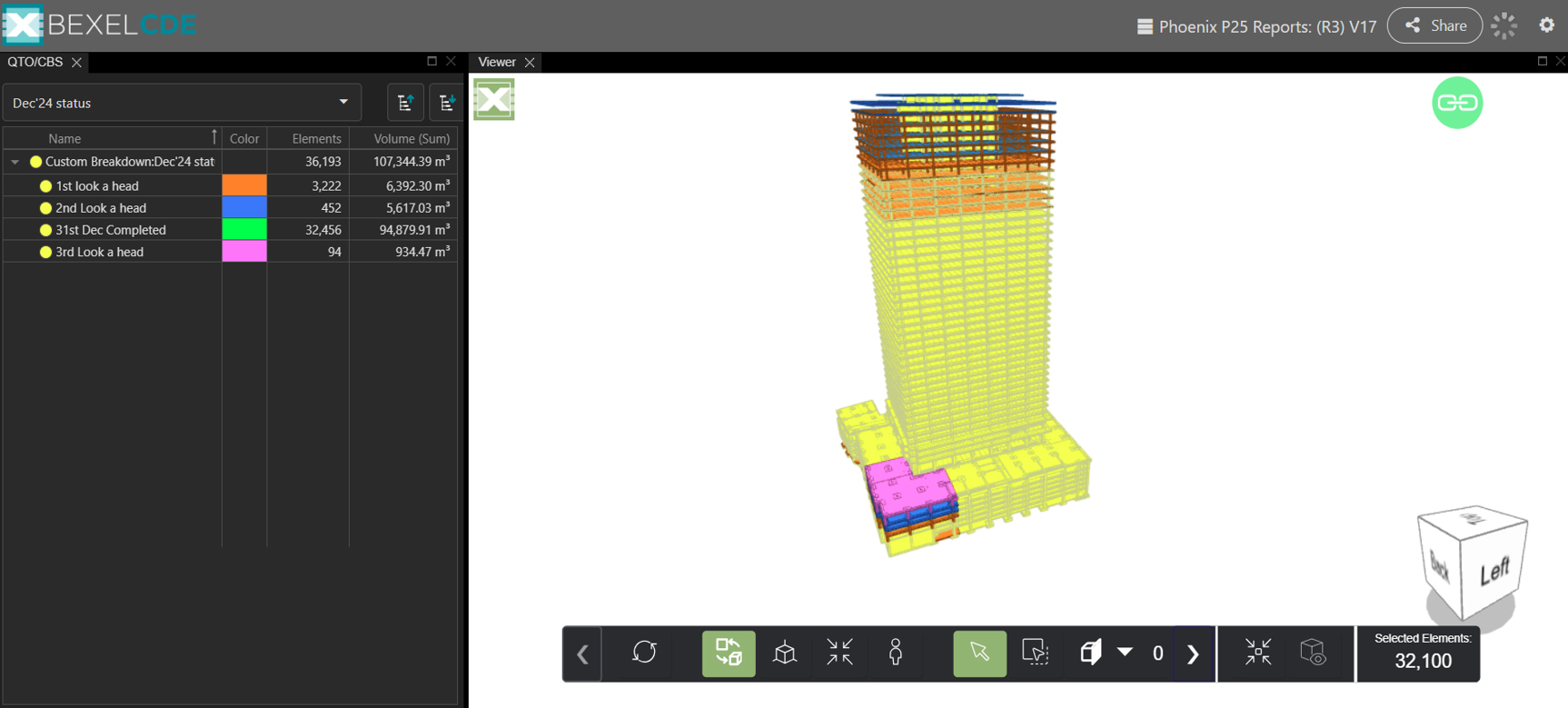 Project monitoring and control are provided to stakeholders via a centralized cloud-based platform that supports multiple projects and versions. Bexel Cloud-based dashboard created for structure which can be used for Forecast simulation, Progress & QTO of latest progress as per building, zone, activity and level.