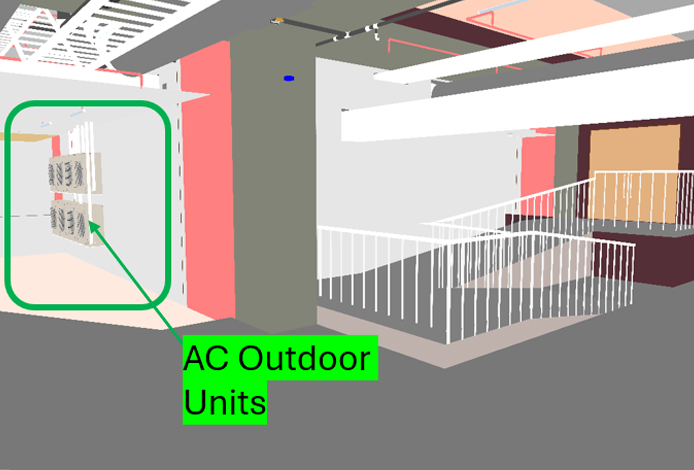 On the left side, we have a 2D plan that overlays all disciplines, while the right side displays a federated 3D model. In comparison, the 2D plan looks cluttered and is harder to interpret. Conversely, the federated 3D model provides a more straightforward and intuitive visualization of the MEP elements, allowing for easier understanding of their interfaces.