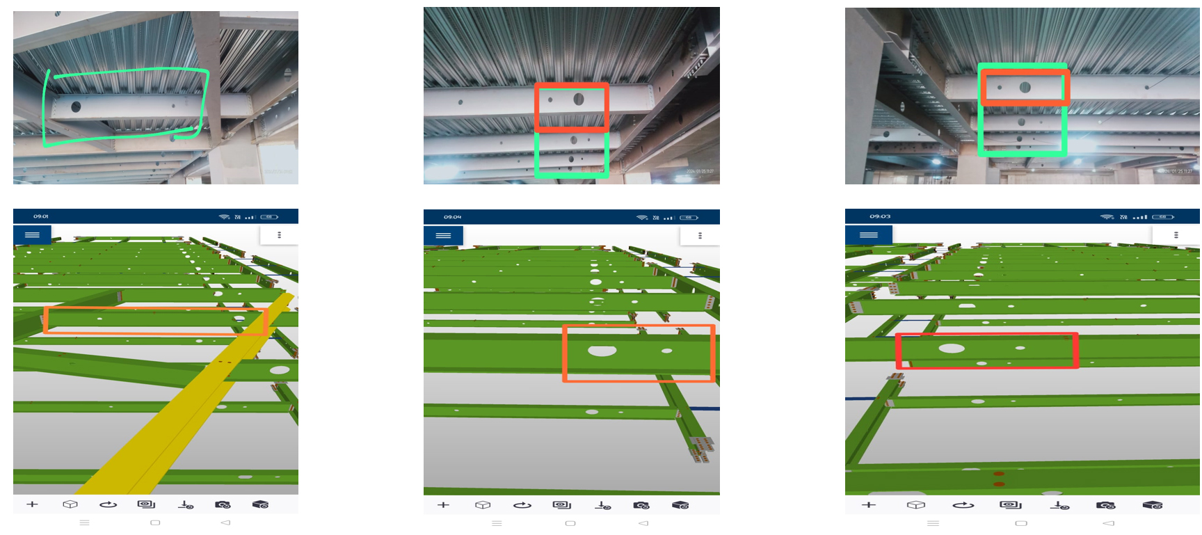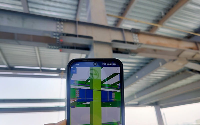 The execution team utilizes Trimble Connect software and its app for structural steel erection, enabling them to identify potential issues prior to execution. This proactive approach helps prevent rework, saving both time and resources during the construction process.