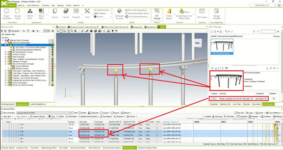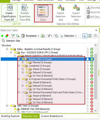 Using Delay analysis available in integrated BIM platform, we can get the status of project progress, that means whether the activities got completed ahead of time, on-time or delayed and due to which we can also predict the forecasted activities status.