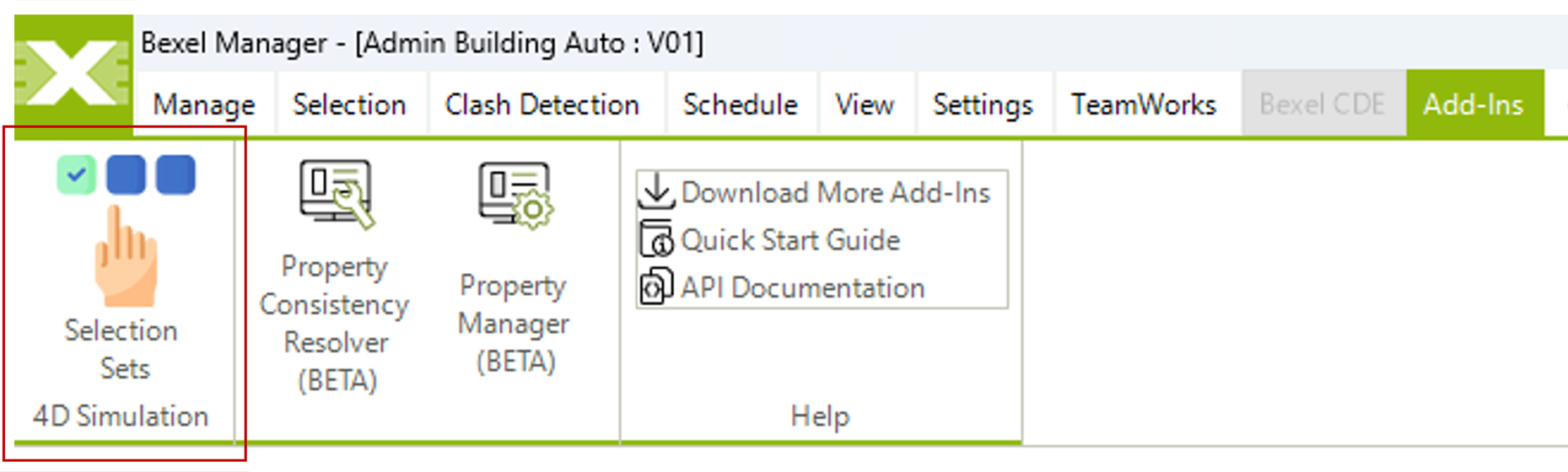Subsequently, Bexel Manager launches automatically, and a new project will be created using the exported BX3 file. The workflow then continues with the automatic creation of selection sets through a custom-developed Bexel add-in. These sets are generated based on the Simulation IDs already embedded in the model and are organized into structured folders automatically. Following this, the system imports the previously generated XML schedule into Bexel Manager and automatically links all schedule activities with their corresponding model elements using the predefined selection sets. And the 4D simulation will be created and finally the output BX3 file will be downloaded to the user.