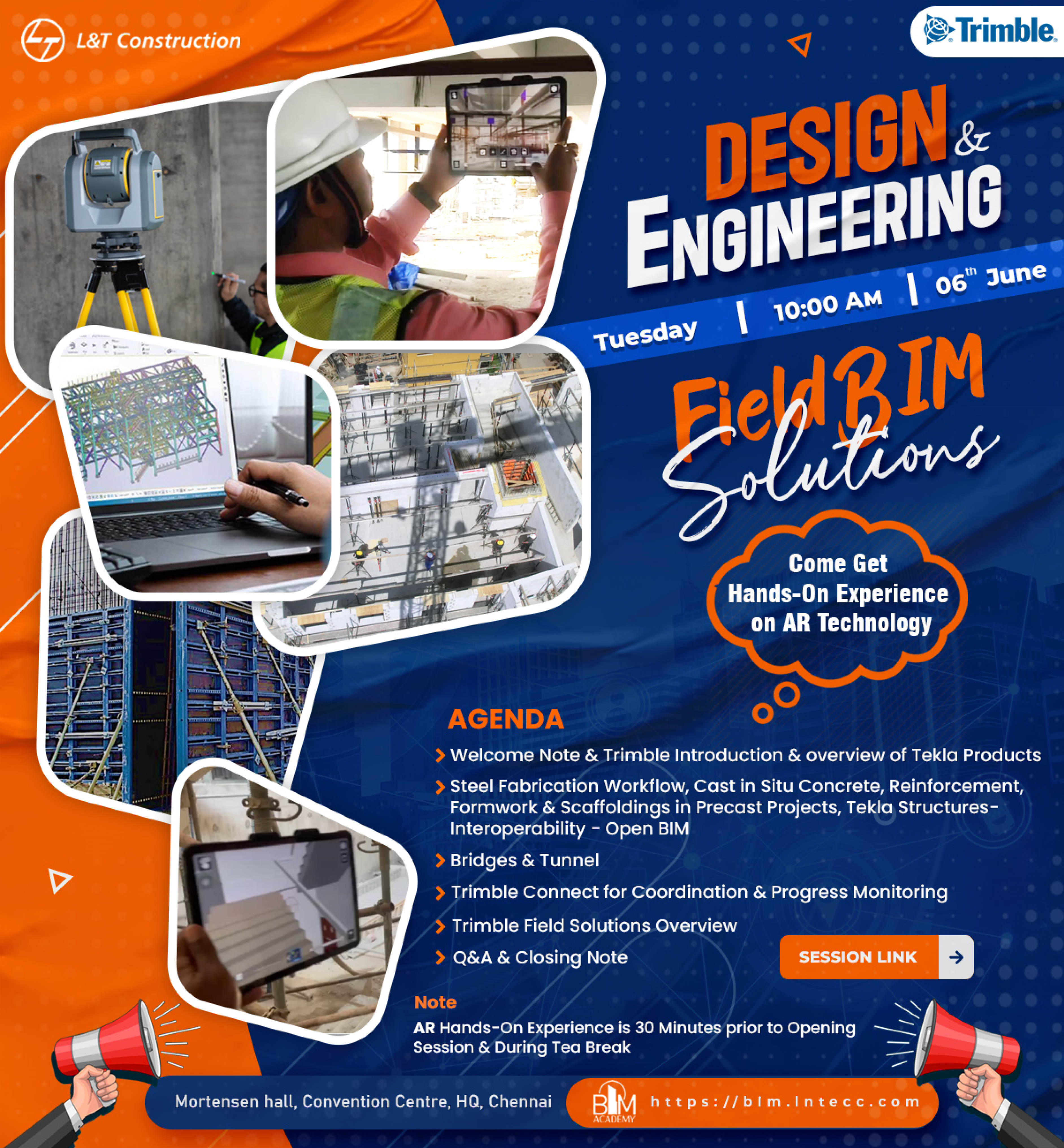 Trimble Inc., a key technology provider, conducted a seminar on June 6, 2023, at Mortensen Hall, Convention Centre, Manapakkam campus, in association with BIM academy.
