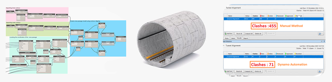 Using Revit Dynamo for tunnel ring alignment modeling has significantly improved our precision. The automation of complex geometric calculations for curved tunnel sections ensures a perfect fit of the tunnel rings, reducing manual errors. The automated process has saved us countless hours and ensures that even the smallest design variations are captured effortlessly.